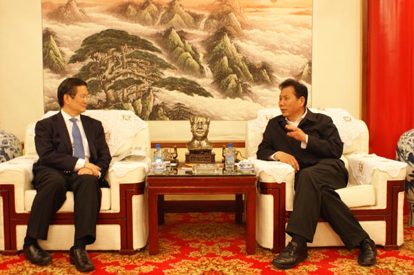 2012年4月19日,盘谷银行集团总裁陈智深一行来我公司考察,汇福粮油集团董事长、总裁石克荣热情接待了陈智深一行。