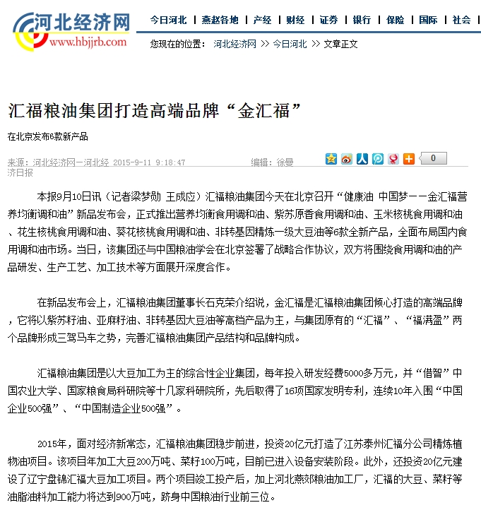 HOPEFULL grain and oil group created high-end brand "Golden HOPEFULL"